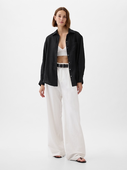 - Soft linen oversized shirt.
