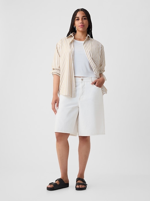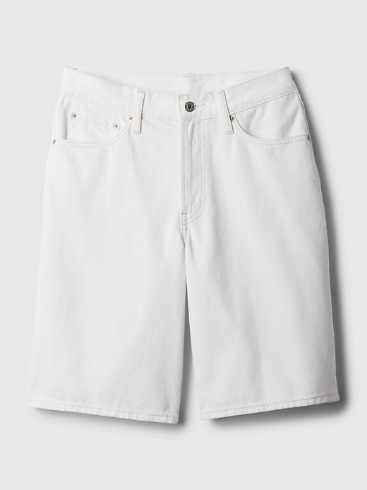 - Look: A classic five-pocket short in a white denim wash.