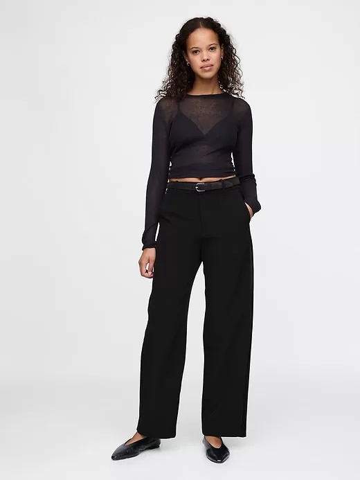- Our Mid Rise Pant has a 10″ (25 cm) rise.