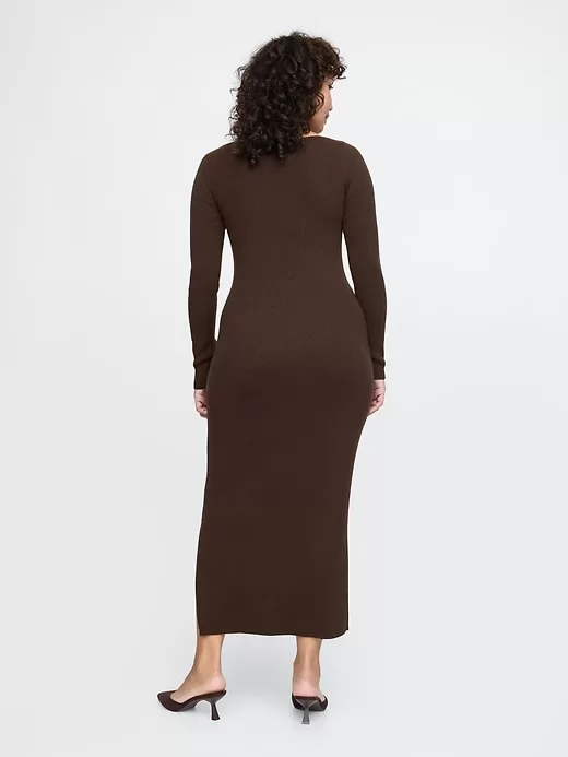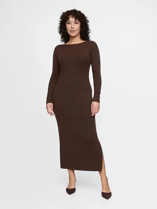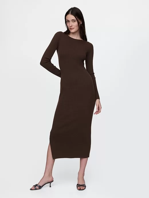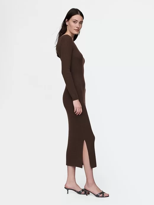 - Soft, stretch nylon-wool blend ribbed knit sweater dress.