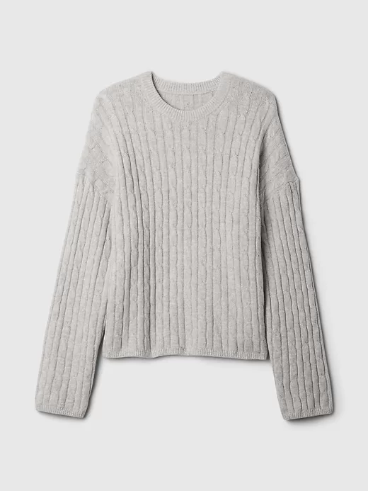 • Supersoft cotton-blend, cable-knit sweater.