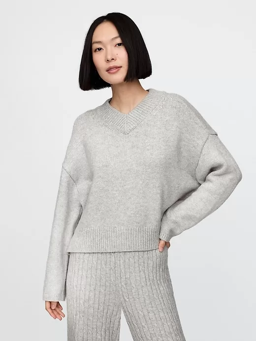 CashSoft Cropped High V-Neck Sweater