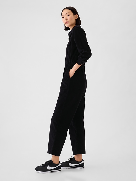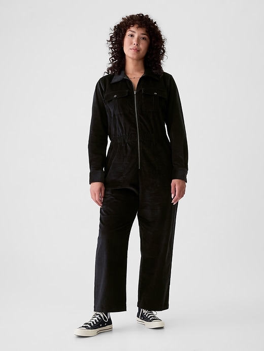 • Soft corduroy utility jumpsuit.