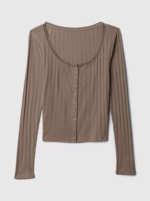 - Soft cotton pointelle cardigan.