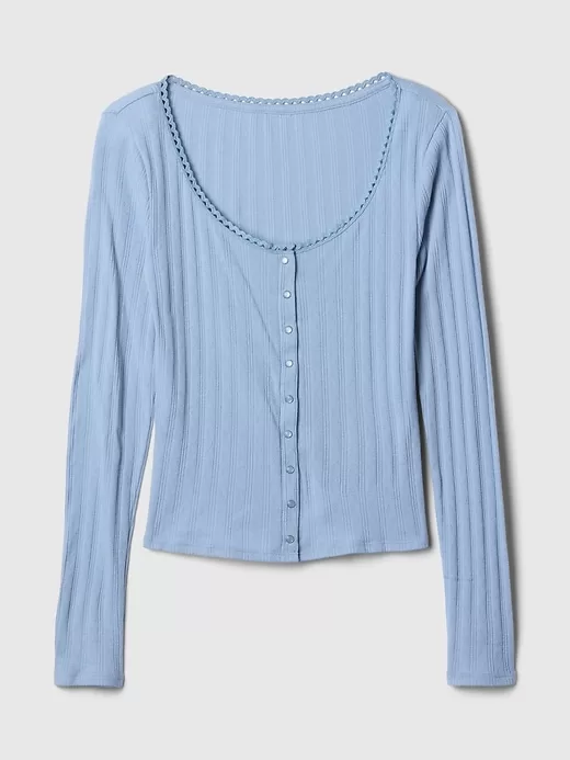 • Soft cotton pointelle cardigan.