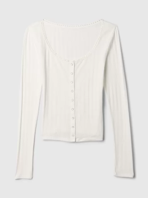 • Soft cotton pointelle cardigan.