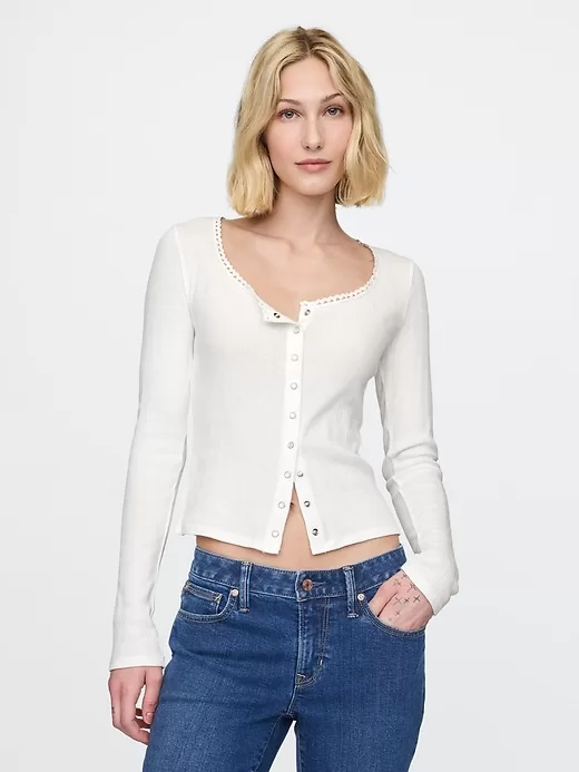 Cropped Pointelle Cardigan