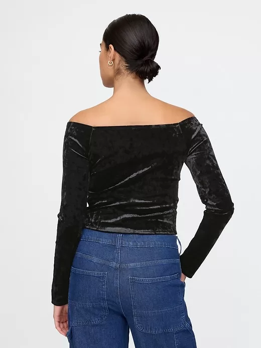 - Soft, stretch velour cropped top.