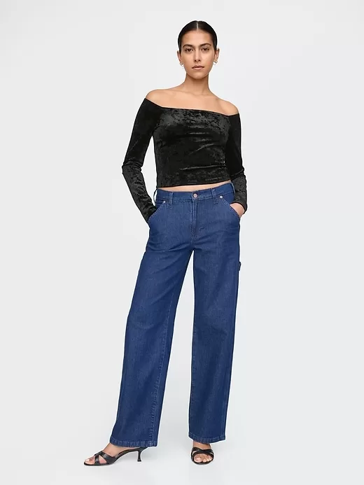 - Off-the-shoulder neckline.