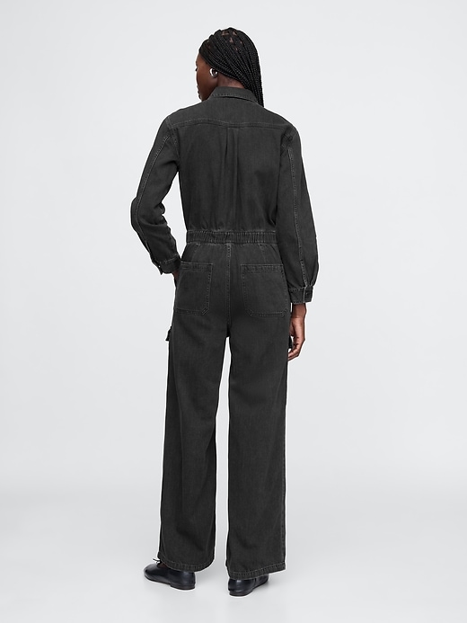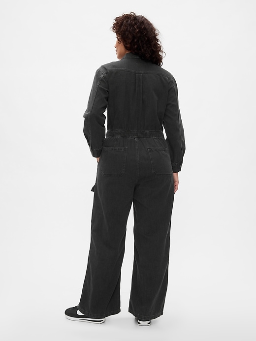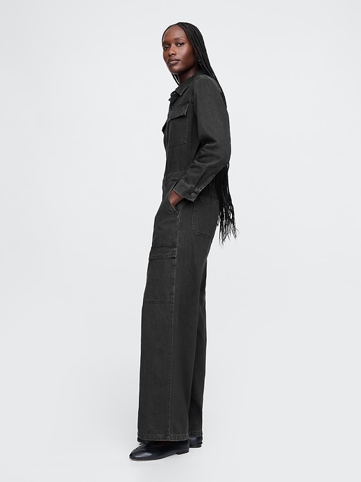 - Authentic, no-stretch denim jumpsuit.