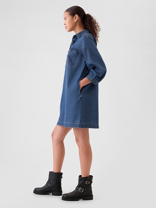 - Responsibly Made: This denim dress is part of our water-saving Washwell program. Compared with conventional wash methods, Washwell uses at least 20% less water and has saved over a billion liters of water since 2016.