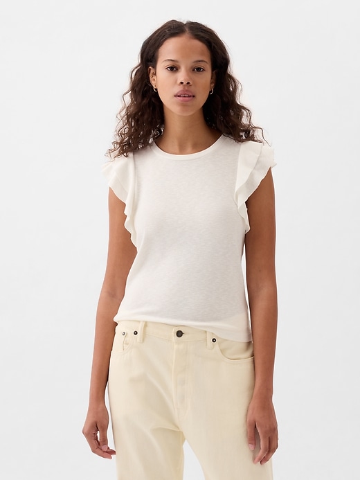 - Short flutter sleeves.
