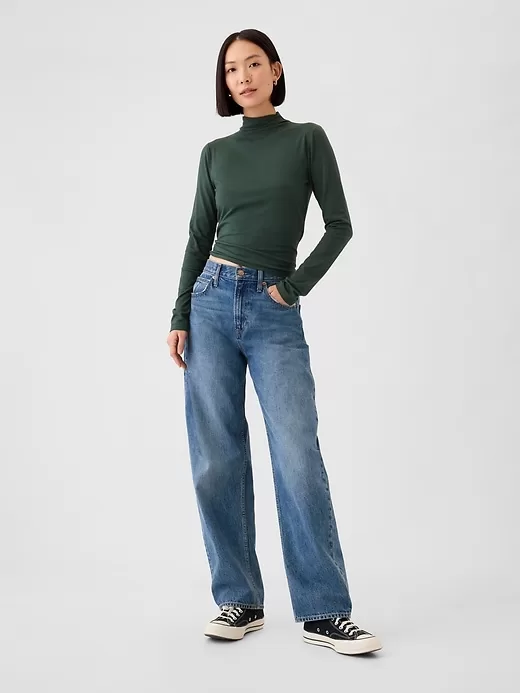 • Soft, stretch cotton-modal blend turtleneck top.