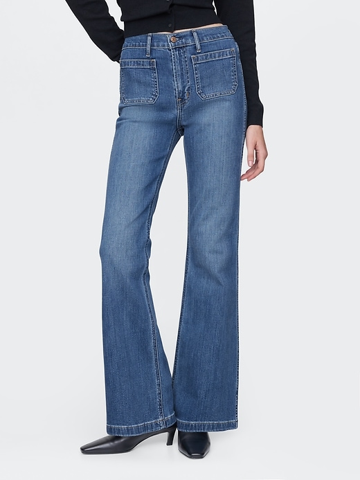 - Fit: Snug & flattering through the hip & thigh with a flared leg.