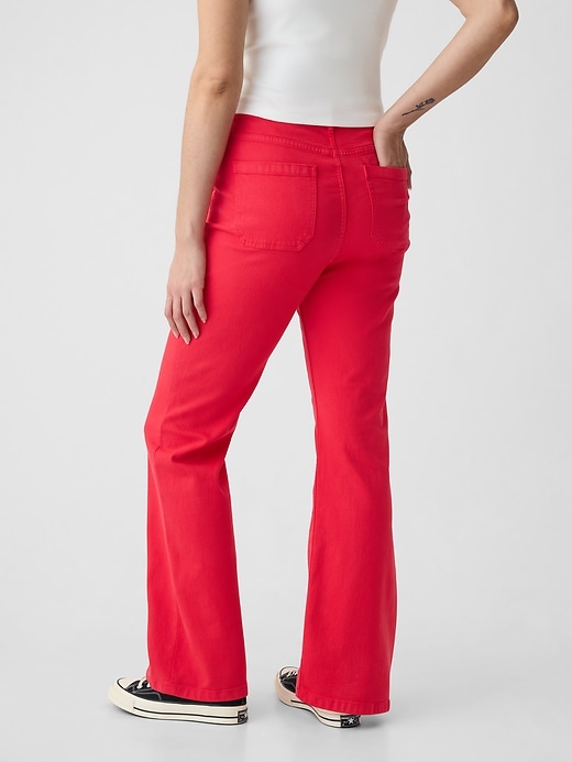- Fit: Snug & flattering through the hip & thigh with a flared leg.