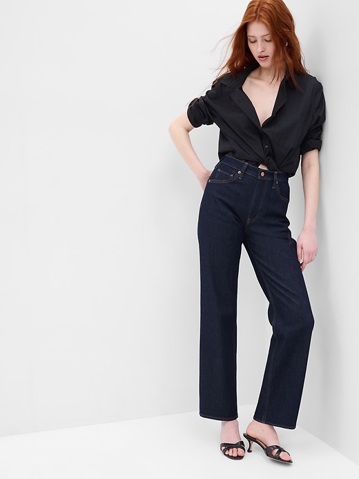 - Look: A classic, loose five-pocket jean in dark indigo wash.
