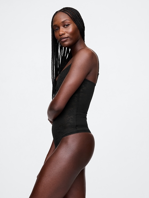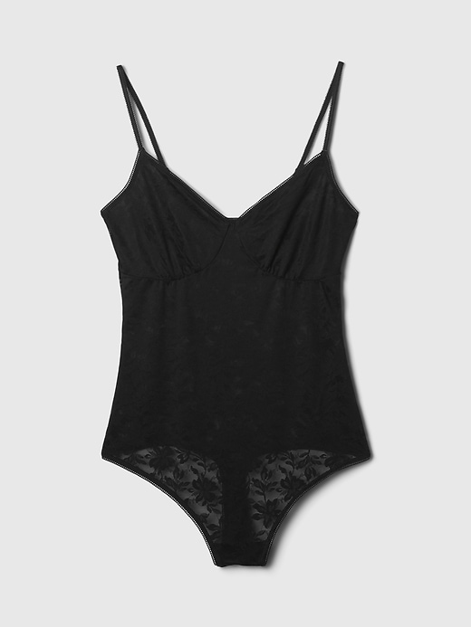 - Soft, stretch mesh lace bodysuit.