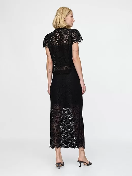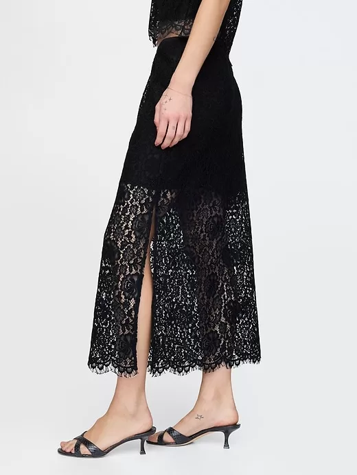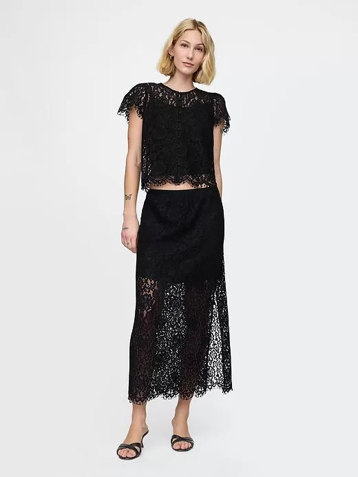 Lace Pull-On Midi Skirt