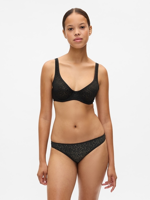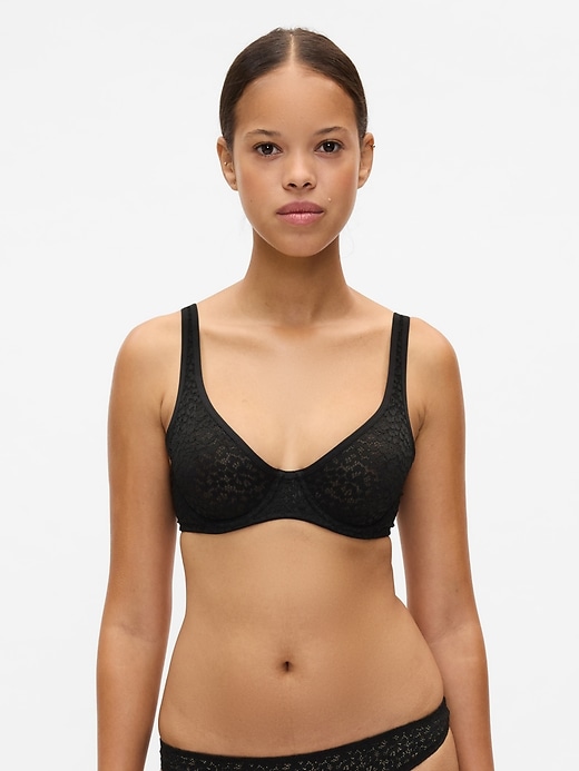 • Soft lace unlined bra.