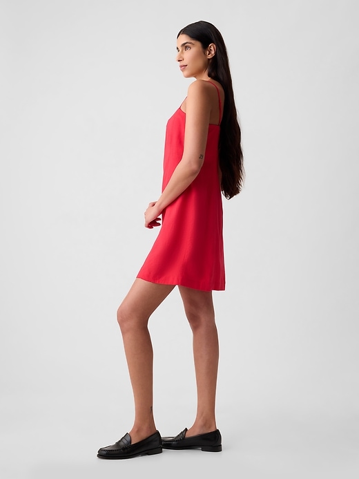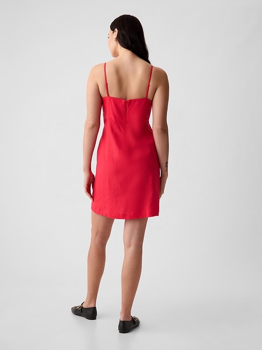 • Soft linen-blend mini dress.