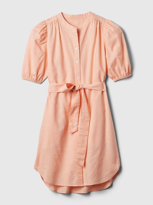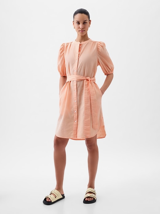 Linen-Cotton Puff Sleeve Mini Shirtdress