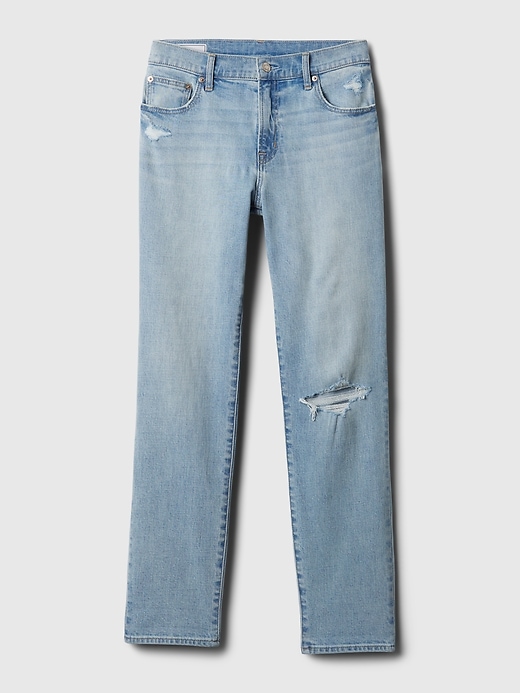 - Details: Zip fly, five-pocket styling, & distressed details.