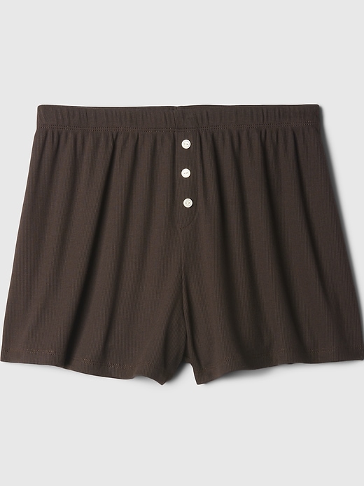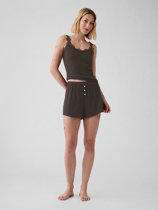 - Supersoft, finely ribbed modal-blend pajama shorts.