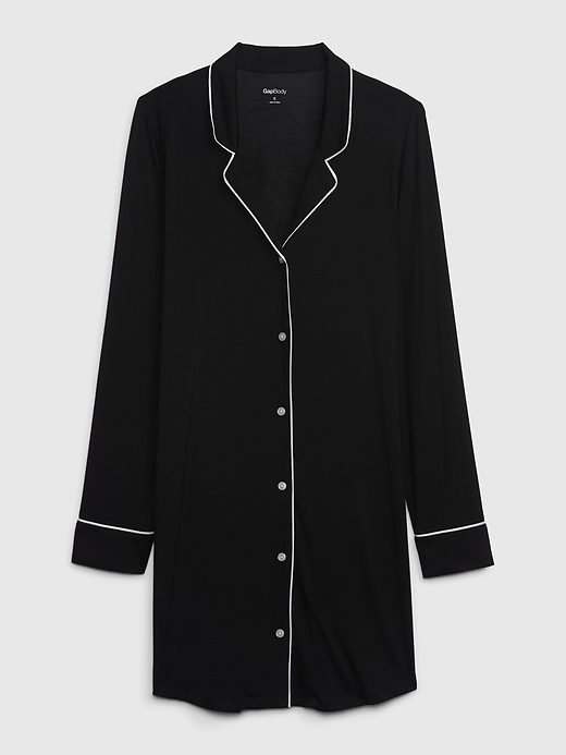 - Soft modal-blend pajama shirtdress.