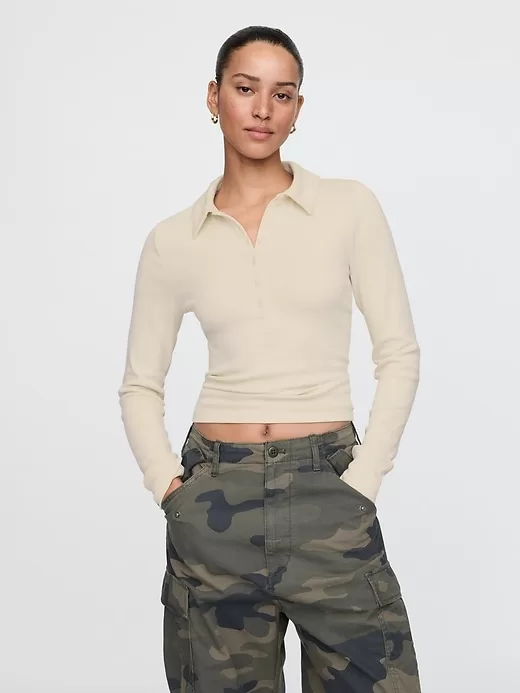 • Soft, stretch cotton-modal blend cropped polo shirt.