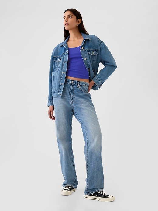 - Cropped, hits at the waist.
