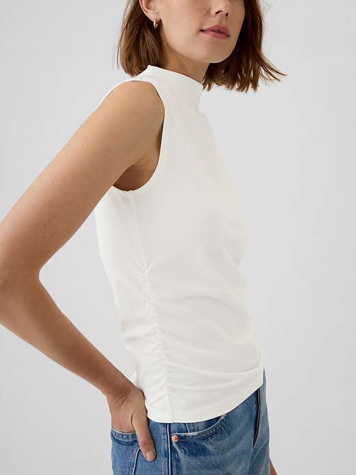 Modern Funnel-Neck Ruched Tank Top