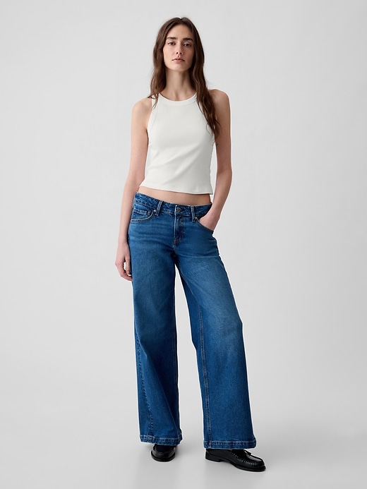 - Supersoft ribbed knit cotton-modal blend cropped halter top.