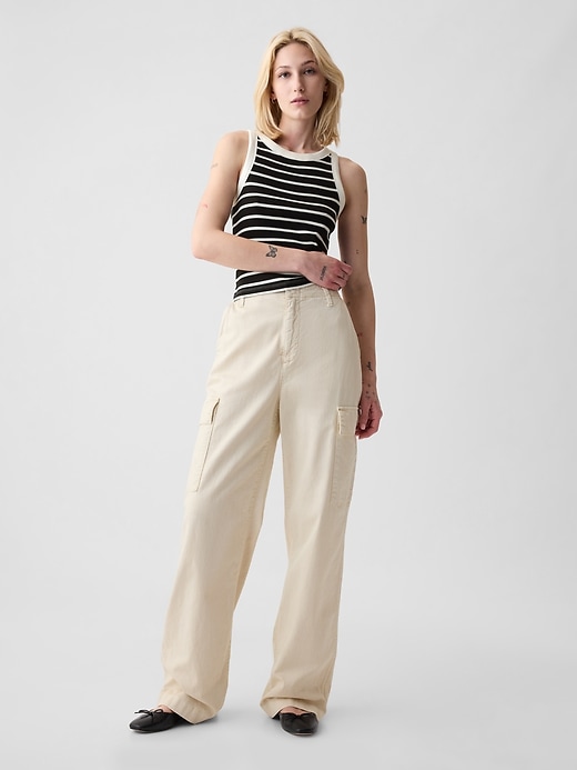 - Supersoft ribbed knit cotton-modal blend cropped halter top.