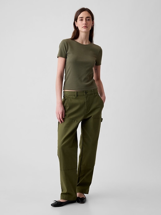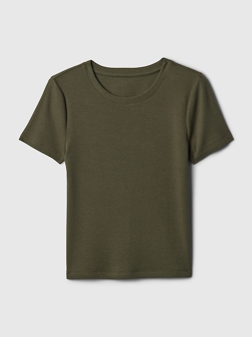 • Soft cotton-blend ribbed-knit slightly cropped T-shirt.