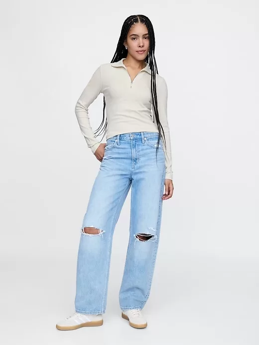 - Mockneck with half-zip closure.