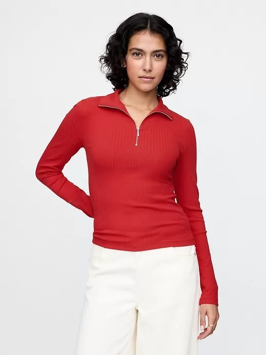 - Mockneck with half-zip closure.