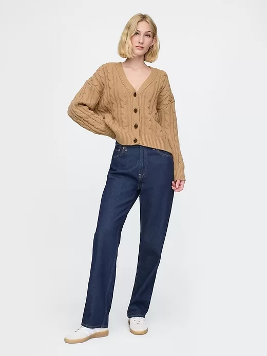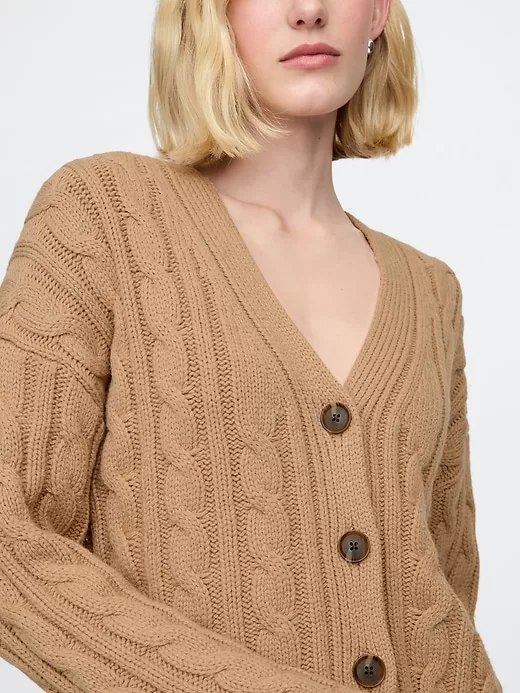 - Soft cable-knit cardigan.