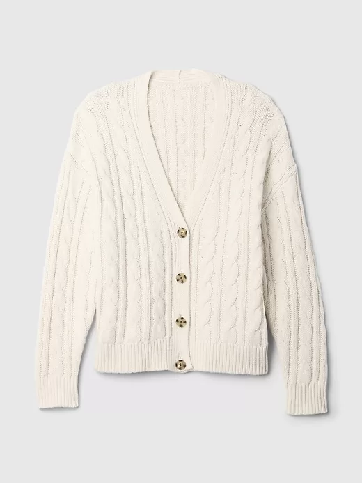 - Soft cable-knit cardigan.