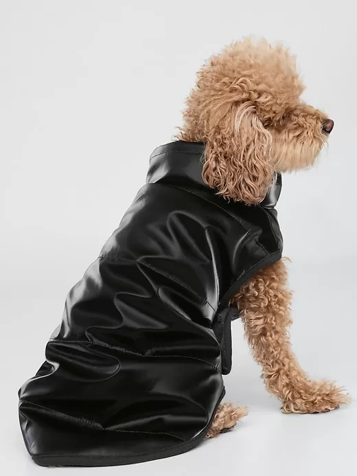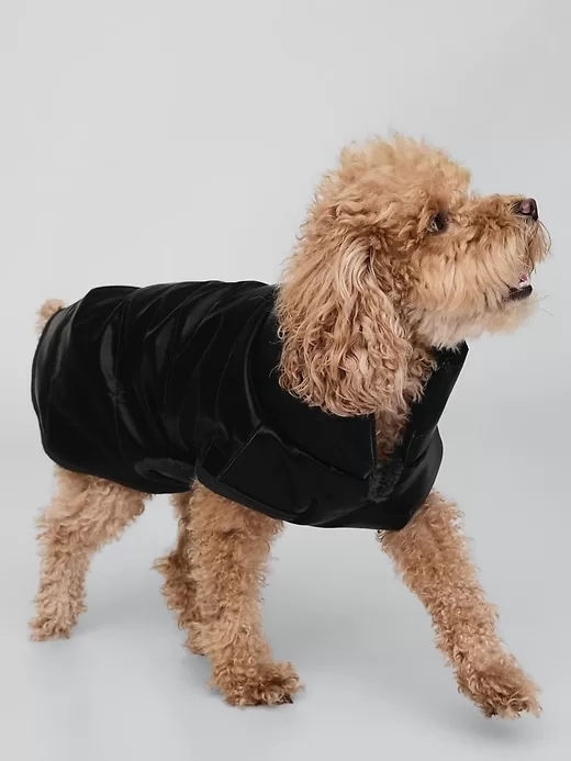 - Smooth, quilted pet puffer jacket.