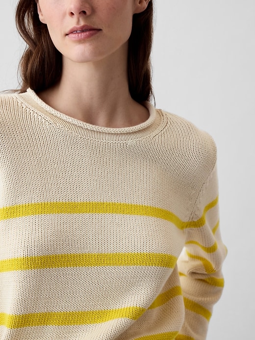 • Rolled crewneck.
