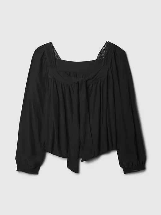- Square neck with bow detail at chest.