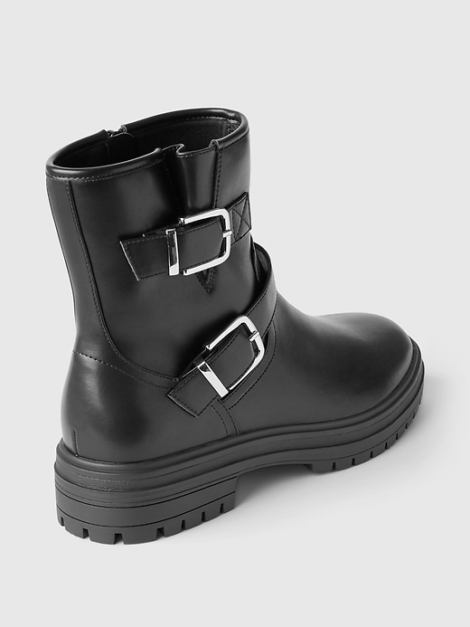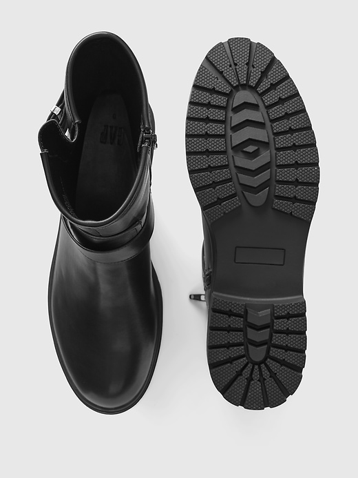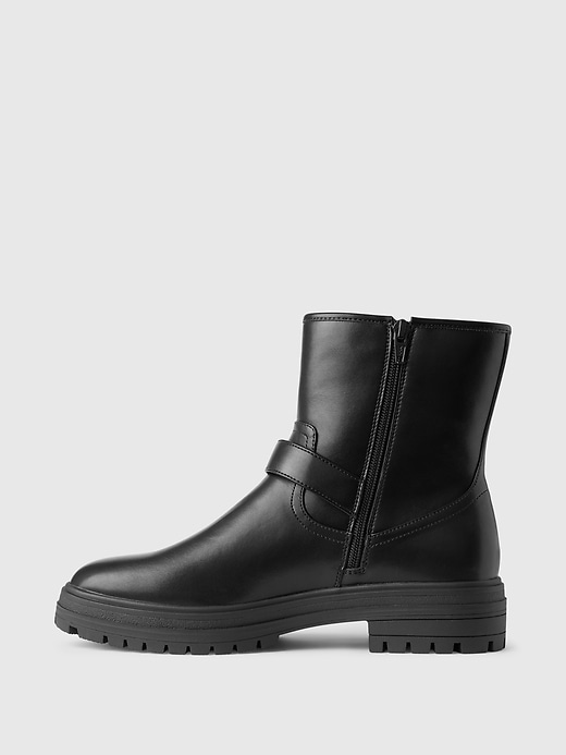 - These moto boots are made with a smooth vegan leather.