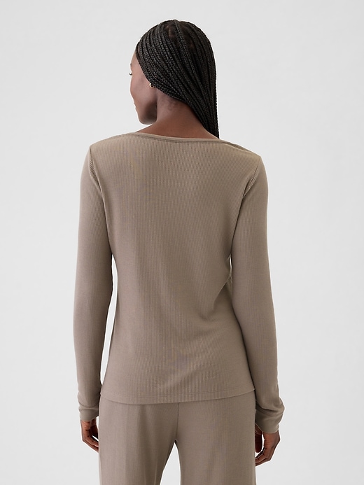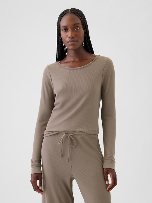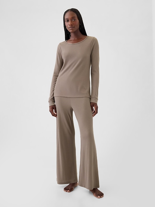 • Soft modal-blend waffle-knit pajama T-shirt.