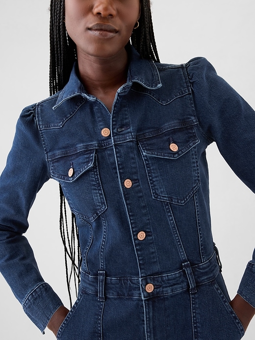 - Low stretch denim western-style jumpsuit.