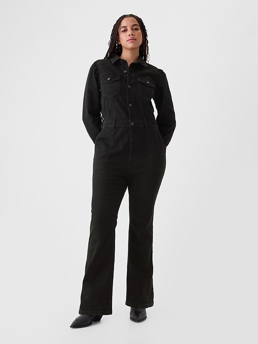 • Low stretch denim western-style jumpsuit.